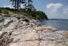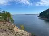 The many coves, islands, and entirely wooded, beautiful areas, with some spectacular rock outcroppings for interest or leaping off into the lake made for great visual and active enjoyment.