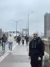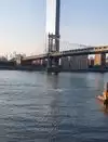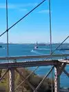 We didn't cross the whole bridge, we went only halfway and passed underneath it by the ferry, it's very beautiful.