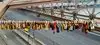 Beautiful view with a sunrise that is reflected in the buildings!! Already a lot of people ... but that's also New York!!!