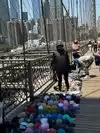 Walking across the Brooklyn Bridge is an iconic experience, but don't expect to be able to take the perfect pic as this is a popular attraction. The number of people selling tack (hats, pins, tees, the chance to take your picture) was overwhelming. Welcome to New York City.