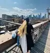 From the bridge you can also enjoy a beautiful view and on the right you can also see the Statue of Liberty in the distance