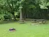 We had a family reunion there recently and it was perfect for our group. We had a building, restrooms nearby, convenient parking and plenty of tables. Everyone had a great time, and later went on a hayride, too.