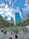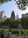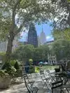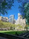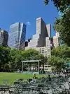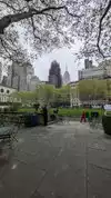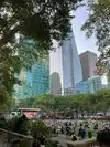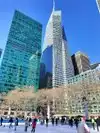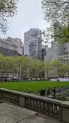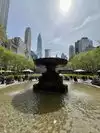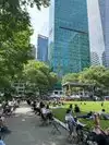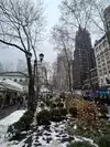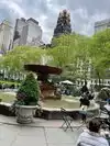 Beating heart in a not too large park which hosts the ice rink in winter. It is located behind the library and contains hot food kiosks and some souvenirs. A passage to savor a typical corner of Ny. The metro stop is exactly at one of the entrances.