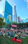 In the summer, this park is live, it has a daily lineup of free activities, concerts, especially Movie nights. The outdoor movie series at Bryant Park is a cherished summer-in-NYC tradition. Presented by Paramount +, the schedule always promises a crowd-pleasing mix of films from different eras and genres. Tip: the lawn opens at 5 p.m.) to claim your viewing spot.