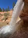 The next day, we did a few trails on the bottom of the canyon near the back entrance of the park (Not too far from Tropic, UT). There's a small parking lot that leads to the trails that run along a stream with wooden bridges crossing over the streams. The trails a quite steep as you head uphill. So we definitely joined the "Out of breath" hiker's club. There was a beautiful water fall that was not too strong. There is enough room to walk under it and grab a drink of that ice cold canyon stream water. I even filled my water bottle. The water tasted and would be a welcome relief in warmer weather, It was in the 50 degree range that day.