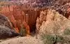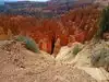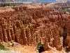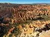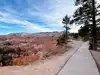 The beauty of Bryce is its accessibility; you can explore it with minimal effort. The service road encircles the park and features several turn-offs and parking lots proividing overlooks of various portions of the park. Some areas offer trails from the top, to the bottom, looping around and then back up, ranging from about 1 mile to much longer. But: you miss only a little by staying at the top.