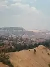 The town outside the main entrance is Bryce Canyon City. There are 3 hotels just outside the gate. The first shuttle stop is there with a huge parking lot. The gas station is there with a shop. There are restaurants there. There is a rodeo within a mile of the gate.