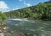 This large park has a number of components to it, including an inland playground. The portion I am reviewing consists of a bridge across the river, hiking on the far side, a place to put in small watercraft, and in general a spot to indulge in some water sports. All are quite good, and complemented by a large parking lot. As my photos show, today I caught a commercial operation releasing inflated rafts holding about six people each, one raft at a time, to "shoot the rapids" (not very serious rapids, which I can say since I was not in one of those rafts), and the screaming gave evidence that a good time was being had by all.