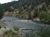 The BV River park has a lot of room. The river boasts several falls for rafters, kayakers and tubers, but really for rafting and kayaking. Depending on the runoff from the spring snows will determine the flow of the river. Still running pretty decsent this last trip. There is a nice trail that follows the river from one end to the other. You can cross as the north end of the park and hike along the old railroad bed. Watch for Mule deer as they are in abundance.