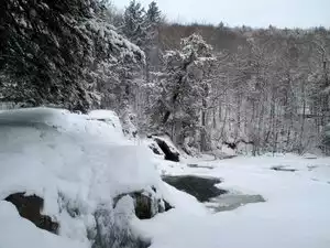 We went in January 2011 and really wanted the view the falls. We used our snowshoes to hike around the fall area, which made it much easier to navigate in the snow. The falls were almost completely frozen, and it looked amazing! I've seen photos of it in the summer (obviously unfrozen), so I was interested to see what it looked like in the winter. It's right off of rte 103, there was a sign for "Buttermilk Falls Rd) or something similar. Even though it had just snowed, the road was plowed up to the entrance to the park. I bet it would look great during all the seasons, so definitely worth a visit. Very short walk to the falls, so you can quickly go & have a look without needing to devote a lot of time.