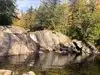 Easy access from Route 103 with large boulders to climb / sunbath on. A flowing 23 foot waterfall that is 15 feet 9 inches high. the area is washed bedrock 90 feet wide ending in a short cascade and a large pool of water. Downstream is a second smaller cascade around a small rock island.