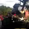 An enormous flow of people trying to leave through a very small exit gate,