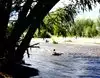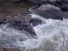 BE CAREFUL, the river is fast and cold and the rocks are slipperty. There are often fallen branches under the deeper parts that can trap and drown tubers and swimmers.