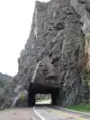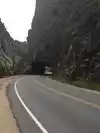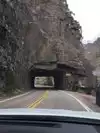 The tunnel is the first point of interest. There's a pull off on the other side. A few miles after that is profile rock, which is quirky. Kind of hard to take a picture. If you see the Poudre Canyon Chapel parking lot, pull in. The rock is kind of far, but I got a pic.