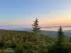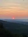 I was aware that the Cadillac Summit Road sunrise experience requires a reservation. I waited until the window of opportunity opened three months in advance. I booked a 5 AM reservation so we would have plenty of time on the summit. The parking lot was fairly full at the top when we arrived, but parking was not difficult. The weather was outstanding; cool (September 11th) but clear, and very breezy. The sky was dark, but with increasing light to the East. We could see stars and planets which added to the experience. The sun rose above a band of clouds, and it was very dramatic. We spent some time on top walking the path (concrete) to see the view all around. We could clearly see the Bar island sandbar exposed as the tide was out. We had done the walk a few days earlier; make sure to do it.