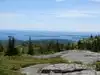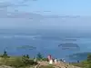 The more adventurous climb to the top of Cadillac Mountain...most of us drive to the top. On the day of our visit the skies were crystal clear and the view from the top was sensational. We were very fortunate. Once on the top, we took in the views; we visited the gift shop; and hit the rest room. There are lots of flat rocks that make for easy walking to vantage points; and blueberry bushes everywhere. In August, you could snack your way to the top!