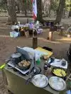 Our stay was Sunday through Saturday in August. This campground is down a ways from the park entrance so it’s very secluded and quiet. Filtered light throughout the day kept campground fairly cool even though temperatures in town were high 80s and 90s. Yellow jackets were definitely a problem and were persistent when you had food or were cooking. My friend made a trap using tuna water and that worked extremely well. I think she may have trapped the entire hive which was located at site 94. Bring a splatter screen or lid when cooking to avoid getting them in your food. We had a screen room without a floor (Walmart) that we popped over the picnic table. That helped too. You are camping under a canopy of trees so sap gets everywhere, including stuck to your shoes. There are two Showers/Bathrooms in this loop. The lower ones are newer and are single rooms for toilets and quarter operated showers. The plus side is privacy, the downside is you can’t adjust the temperature of showers. On/Off are the only options. I was also attacked by bees there. The upper bathrooms are dorm style with several toilets and showers at the end. One was broken, but the other worked well and I could control temperature. I actually preferred that shower. Tip: you can get quarters from the welcome center! Our two sites (93/94) were perfect for families traveling together because they are separated significantly from other sites and are flat and open in between. If you need a third site, I’d go with 92. There is a water spicket with threads right in front of #93 so you can easily hook up your hose and fill up your RV/Trailer. Short drive down to the Stanislaus River. Beautiful rapids but water was very cold. Water moves too fast to swim but there are are spots to wade.Tried to fish, no nibbles there. For swimming go down further to the South Grove parking lot and take the very short and easy walk to Beaver Creek. We took the guided ranger tour of North Grove because we wanted a little more information on the different flora and fauna in the park. Shout out to Vaughn!! Otherwise you can grab a brochure at the welcome center which will tell you about the different trees. Lake Alpine is 30 minutes from the park. Great excursion for boating, fishing, and swimming. It’s beautiful up there. We hiked the South Grove to see the largest tree in the park, the Agassiz Tree. The tree is immense and worth the hike. It’s just under 5 miles total (out/back hike) but is fairly easy. There is a bit of elevation at the beginning but flattens out. It’s very shady but don’t forget lots of water. We were lucky enough to be there for Astronomy night. Definitely check that out if you're around. Very knowledgeable and friendly people happy to share the sky with you. Tip: You can buy ice at the park entrance.