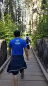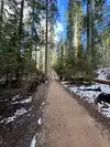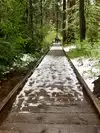 Somewhat more ambitious is the South Grove, about a 9 mile drive through the park. It starts with an easy, probably accessible, .5 mile walk down to a very pretty footbridge across Beaver Creek. From there it is a dirt path, not a difficult hike, 5 or so miles, but some elevation changes. Probably do-able for someone using a cane if they are otherwise fit. The reward is that it is far less crowded than the North Grove, and takes you through beautiful stands of cedar, redwood and aspen, as well as growths of wildflowers and fern. A few breathtakingly massive trees as well.