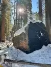 Whatever your level of fitness, you will be able to appreciate Big Trees. The North Grove, where you enter the park from Hwy 4 east of Arnold, is a 1.5 mile loop through towering trees; it is level and wheelchair accessible when there isn't snow on the ground (might be some tight turns). Although it is short, it is quiet and peaceful and offers plenty of opportunity to commune with some of the worlds oldest and tallest trees. There is also a written guide available for a tiny fee which describes some of the features and trees along the loop. Rangers walk the loop all day long and offer their own insights to inquisitive hikers- the day we were there a ranger excitedly pointed out to us "baby giant sequoia"- saplings about 8 inches tall- which were the first new growth sequoia he had seen in a couple of seasons; he explained how to tell the difference between sequoia saplings and cedar saplings (the flatness of the needles).