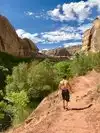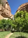 If you have limited time in this National Monument, do this hike! It's a great introduction to the area; if you start early in the morning or do it later in the afternoon/evening, you will be mostly shaded from the sun. Doing this hike in July, we opted for a 7:00 start and were glad we did. The trail was mostly shaded going out at that time. It's very peaceful and there aren't the crowds of other UT National Parks. The falls were stunning, the water clear and refreshing, the bottom a soft, soft sand. The hike back was a bit warm. Wear a hat & sunscreen, bring plenty of water. Most of the trail is either packed dirt or sand which can be somewhat challenging to walk in. I suggest hiking shoes or boots rather than tennis shoes. Toilet and water available at the trailhead.