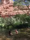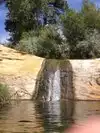 Its not free, and there are a lot of people, but its still a wonderful experience. 6 mile hike in and out, $5 per vehicle. There is a brochure at the trailhead to help you learn about the area and see pictographs. The trailhead also has several shaded picnic tables, flush toilets, and water. The hike is hot but good for dogs that are used to hiking, because you can dunk them in the river frequently along the way. Please pick up after your dog so dogs can keep coming to this area. At the end, a gorgeous falls, beach, and pool; perfect for a picnic. Return the way you came.