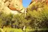 Lower Calf Creek falls is a beautiful oasis in the desert. Great hike, easy terrain, and a wonderful reward at the end of the trail...a cool refreshing misty waterfall. There as trout active in calf creek easily spotted as you walk on the trail. Tip: get there early in the day or early in the season to avoid the heat.
