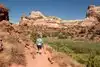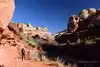 The hike to the Lower Calf Creek Falls passes through towering Navajo sandstone walls on both sides of the trail. It wasn't crowded when we were there which made for a very pleasant hike with time to admire the pictographs and the beautiful monuments around us.