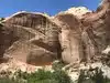I strongly recommend this hike to see Calf Creek Falls. We saw several people in shorts & bathing suits walking under the falls. Make sure you take binoculars or zoom camera to get a good view of the Native American Pictograph. Part way into the hike if you look closely across the swamp you can see the pictograph on the rock wall.