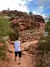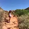 Somewhat flat, interesting hike with an awesome finish waterfall and swimming hole. I wish I bought my swimming suit. The scenery for this hike was magnificent---great rock formations---we even saw a petroglyph. Flat hike so not difficult at all. The finish was awesome with the refreshing waterfall.