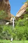 This is one of the best hikes in the Escalante Area. It is an easy 6 miles roundtrip hike with something new and spectacular around every bend. The falls are 120 feet tall and have a large pool of refreshing cool water which beckons the weary hiker's feet. Take a picnic lunch and enjoy the BEAUTY all around you. There are no facilities, amenities, restrooms, or trash cans at the falls, so you must pack whatever you bring in, out with you. Check with the Camp Host for conditions on the trail before you hike. There is a $5.00 required parking fee payable at the trailhead. A small campground is also available for those who are looking to stay overnight.