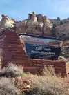 A beautiful first come first serve campground with calf creek running through it. Lucked out and got a spot right next to the creek. Fire rings and a wood or charchol grill and picnic table at each site. $15 a night. Drinking water and a toilet to boot.
