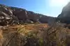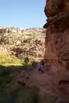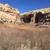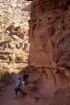Pick up the trail guide at the trail head. The trail guide will identify where to look for Pictographs and ancient storage granaries along the trail. Binoculars or a good zoom lense camera will help locate the pictographs & granaries. The trail to the waterfall is also scenic.