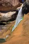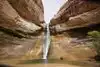 This 136ft. waterfall is never dry. The only way to see it is a moderate 3 mile hike. It is totally worth the hike! The trail through the canyon to get to the falls is beautiful and Calf Creek Falls is stunning!
