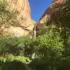 Wow! About three miles into the falls from the parking lot....interesting trail, lots of greenery, beautiful red canyon walls to look at as you walk...eye candy on the way to a beautiful water fall...can't say enough good about the hike! Just gorgeous! Can I give it six stars?