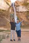 A hike with a definitive attraction at the end is very satisfying, and the Lower Calf Creek trail offers that. It was recommended to us by several local experts as a great trail that’s not difficult for someone whether almost of retirement age as well as a college student. It is 90 minutes in, and mostly level, then the very pleasant falls at the end, and 90 minutes out. Nice scenery along the way — take a printed trail guide so you can read about the 17 numbered stops along the way.