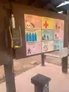 There are restrooms located at the entrance of the parking lot and there are trail maps up on the wall on the exterior of that building. Pick one up for additional info on the area and so that you may know what the numbered markers on the trail represent.