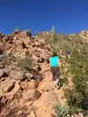 Great for exercising, but not so much for leisure hike. Views of city at summit are ok, nothing majestic. Gotta use your hands to climb in many places. Most people hiked half way only. We hiked up the echo trail and down the cholla trail. Struggled a little at some steep areas going down but if you take your time you'll figure it out. Blue dots mark the cholla trail.