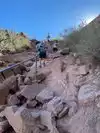 Okkkkk After reading review after review on here…I finally made it. I’m thankful for these because all of them are true. Take as much water as you can carry and snacks. Take your time. I wanted to literally cry about 90 percent of the way up…. I was tired lol … but I made it. Most will say that downhill is easier but I must say that I enjoyed the way up better than the way down. I’m 6’2 and my long legs go up easier than the baby steps to go down to avoid slipping . Lots of points require hand and feet to get up so be hands free if you can. Definitely wear hiking boots. Some people had on sneakers. I don’t see how they did it. Took about 4 hours round trip for me including plenty of stops and photos. Saw a roadrunner and a chipmunk. Cool. The other hikers were friendly and motivating each other. I’d do it again. Nice hike. Cholla trail is indeed closed.