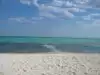 The views are great for pictures, water is not deep so good for families with little kids. Sand is white and fine.. more Caribbean style.