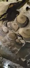 There is also a Mastodon bone imbedded in a wall 6 feet, according to radar/ sonar technology of some sort. They lived "10,000 years ago". In that same rock are marine fossils from when the cave formed.