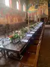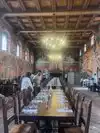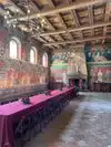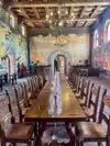 There is a guided tour of the castleâs chapel, enormous (height of ceilings and length of room) dining hall, torture chamber, and basement with barrels of wine.