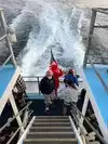 Wow! I found out our Captains name was Troy. On the trip over, we came upon an enormous pod of dolphins. Captain Troy slowed the boat down, announced the pod was out there and allowed the bow opened for viewers and did a "donut" so that everyone could see the dolphins play. Marie made the best Bloody Mary's and Steve is the best deckhand. What a great experience!