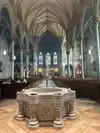 This is a beautiful Cathedral. The stained glass is old world and stunning. It has the most interesting baptismal font I have ever seen.