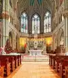 Magnificent American neogothic basilica amazes with its architecture, art, colors, stained glass windows and atmosphere.