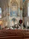 Breathtaking frescoes and paintings with a loving history. It was wonderful to celebrate Mass in this setting. We were given a warm welcome. Thank you!