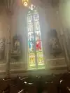 This is a beautiful church with so much history. The stained glass windows were phenomenal as were the murals. Sunday mass was beautiful and the choir sang beautifully. I attended mass with my spouse and my 6 month old son, maybe I missed it but there was not a baby changing station in the restroom so we had to change him next to the sink. We were able to enter the church from the street level elevator which was nice.