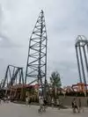The Millenium Force line opened as we passed, so I went up. Then I saw that one train finished the ride but had to sit behind the water-tank test train while they were emptied in the queue space. 15 mins at least for them waiting to get off. Wow! Why???