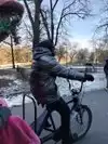 It was a grey, wintry day in the early afternoon that we went. The lake had frozen solid. Despite fallen snow on the paths, there were plenty of people, varied ages, out to enjoy this unique oasis. Little ones were having fun, in strollers, holding adult hands or even running ahead on their own. Hats, coats, gloves and scarves were all de rigueur for the weather, inclement as it was.