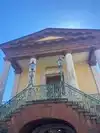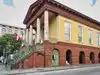 Built-in 1841 in the Greek Revival style, the red sandstone building with green ironwork trim, along with its sheds, are among the more than 100 sites in the city listed on the National Register of Historic Places.