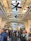Little biscuit is near North end. Restrooms at South and other past glass doors on North. Very busy, for people watching. Products like Coozies , etc, you can buy cheaper at Walmart. Tour a Museum, instead, learn real History.